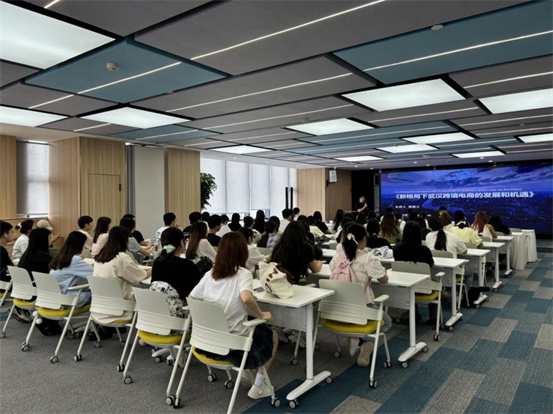 随后,一火跨境经理向师生详细介绍了武汉市跨境电商人才新星计划。她表示,一火跨境致力于创建校企合作平台,全力支持大学生创新创业。她希望学生通过在产业园的跨境电商实训,获得专业知识和技能,积极投身于跨境电商行业,为武汉市的区域经济发展和产业升级贡献自己的一份力量。